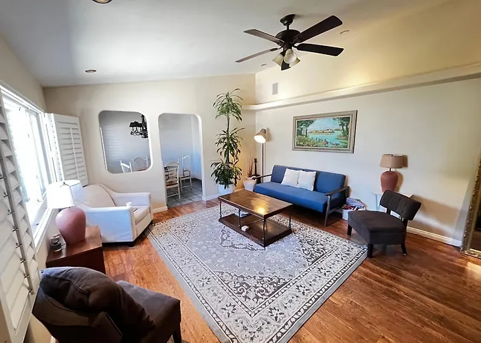 A refrigerator, an oven, and kitchenware, as well as other self-catering facilities, like coffee/tea making machines are provided at an equipped kitchenette. Offering American dishes, restaurant PC's Bar and Grill is located in the neighbourhood of this accommodation. Hollywood Burbank airport is reachable within a 33-minute drive from the 2-bathroom villa.
